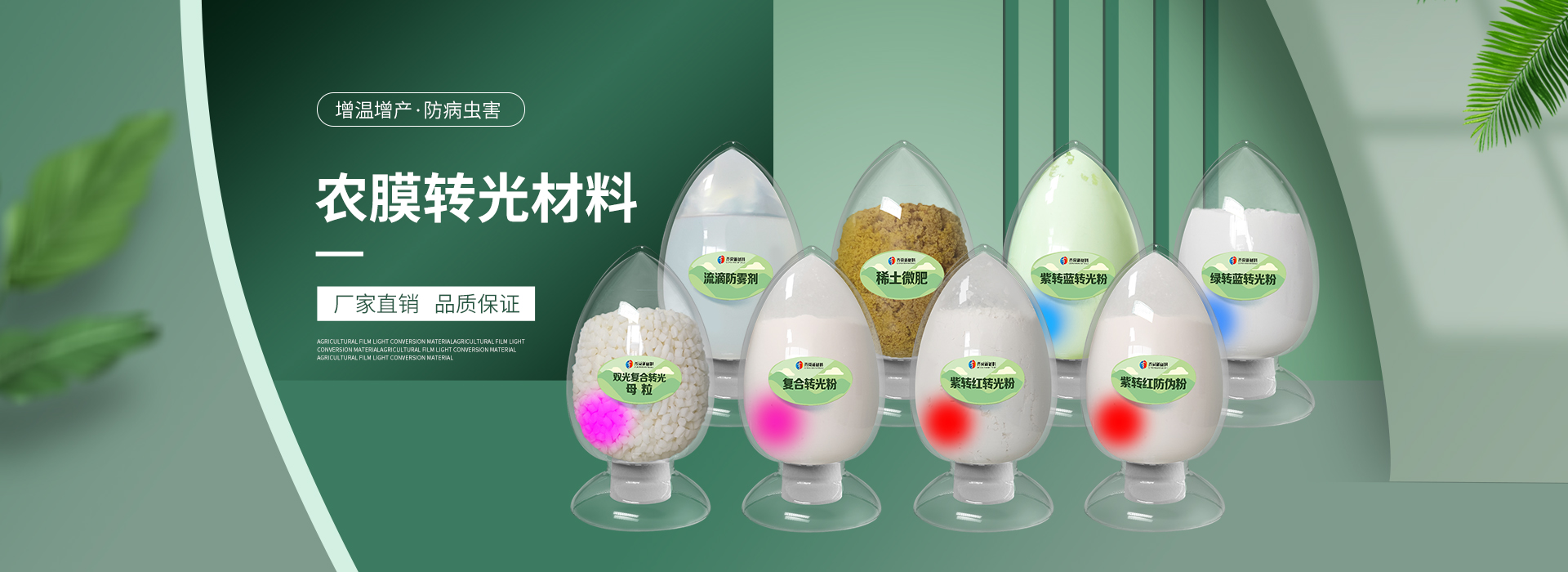 我公司前身為2011年成立的淄博舜明熒光科技有限公司。隨著公司的發(fā)展,廠址從淄博搬遷到青島,2020年5月公司重新注冊為山東齊舜新材料有限公司。公司注冊資本2000萬元,主要從事新材料研究和開發(fā)。目前主要產品包括:農膜用轉光粉、轉光母粒以及轉光農膜;農膜用長效防霧流滴涂覆液;復合肥添加劑及葉面肥(稀土微肥);防偽粉;LED封裝熒光粉;夜光粉;太陽能光伏電池增效熒光粉;鋰電池正極材料等。